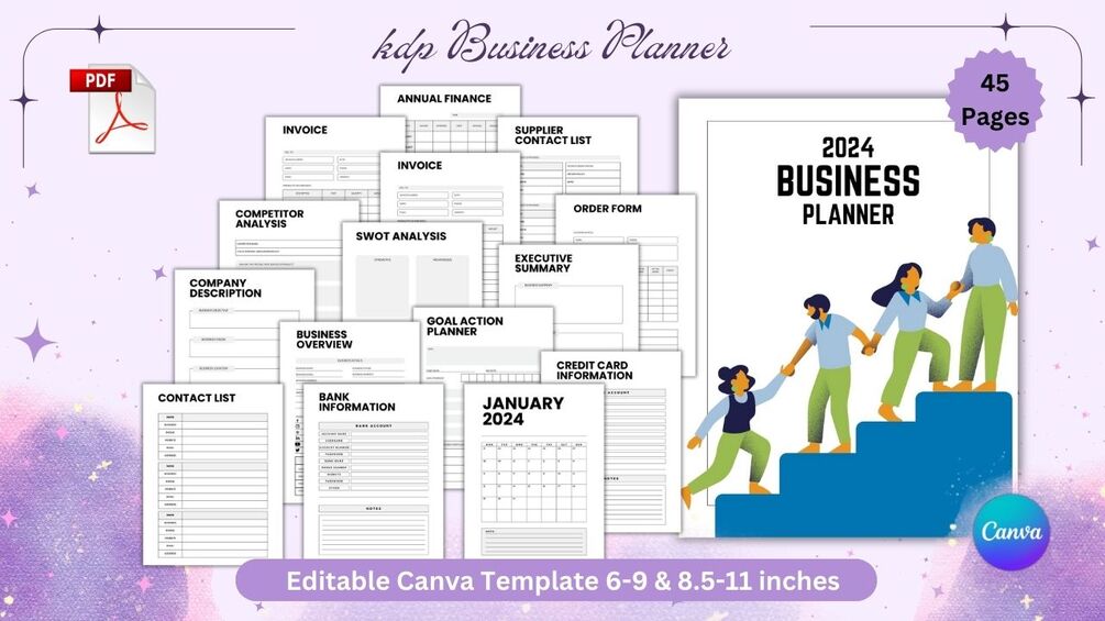 45pages Canva Online Business Planner 45 Templates for Journal, Canva KDP Planner editable interiors Bundle COMMERCIAL Use as print PDF or upload