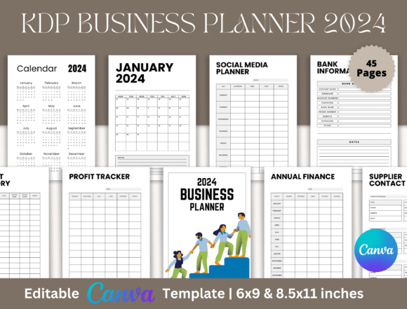 Canva Online Business Planner 45 Templates for Journal, Canva KDP Planner editable interiors Bundle COMMERCIAL Use as print PDF or upload
